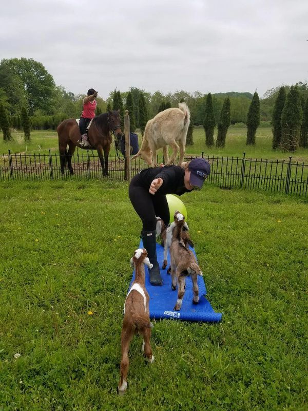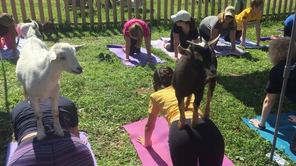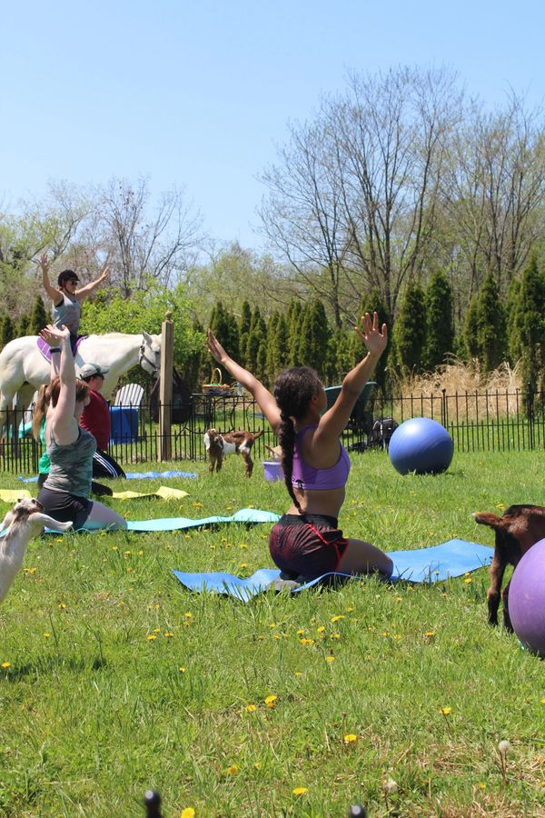 Practice yoga and engage with the baby goats, who are in diapers, onesies, and suspenders, by cuddling them and having them do the poses with you. Have fun feeding them baby bottles too! Each session includes 1 hour of goat yoga and 30 minutes of snuggle/bottle feeding time.